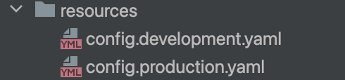 그리고 다음과 같이 resources 폴더에 개발 및 운영용 yaml 설정 파일을 생성 하였습니다.