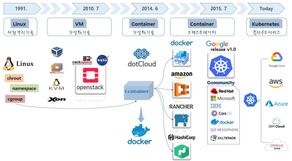이와 같이 발전해 온 환경은 최근 IT 업계에서 쿠버네티스 하나로 정리가 많이 되었습니다.