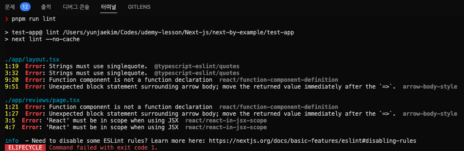 그리고 모든 ESLint에 문제가 없는지 확인하기 위해서는