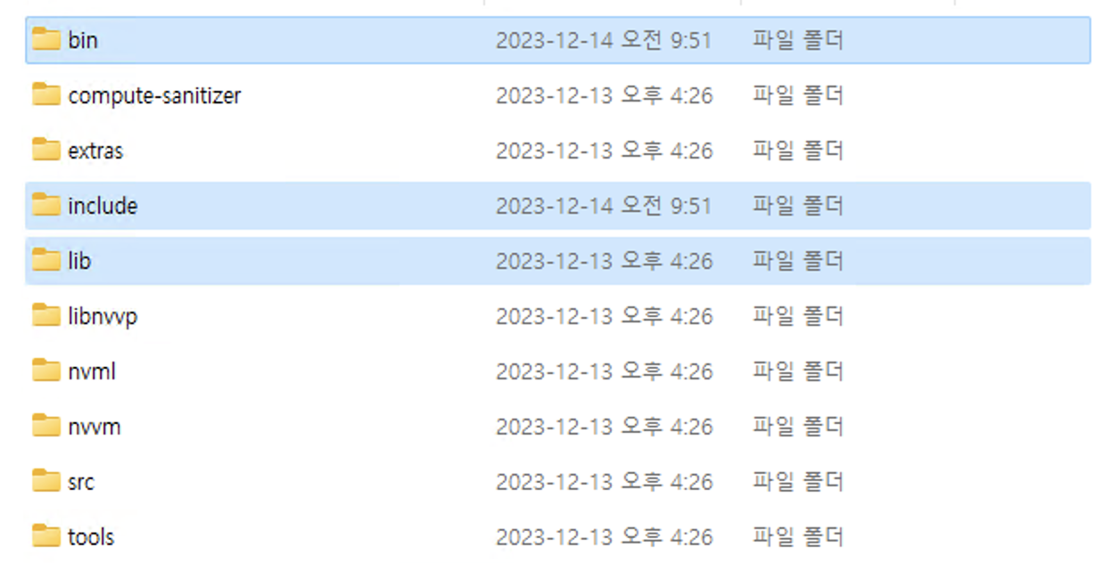 경로 C:\Program Files\NVIDIA GPU Computing Toolkit\CUDA\v12.3 <-- 설치한 버전