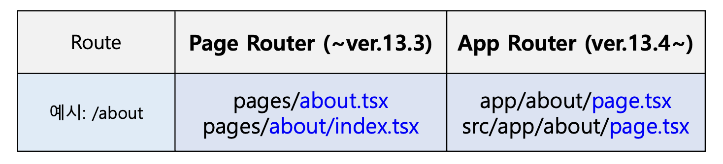참고: App router는 파일 이름이 반드시 page.tsx이어야 함.