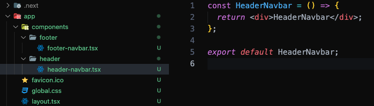 위와 같이 navbar를 만들고 app/layout.tsx에 import해서 다음과 같이 넣어준다.