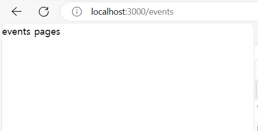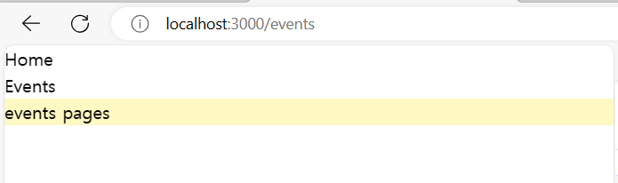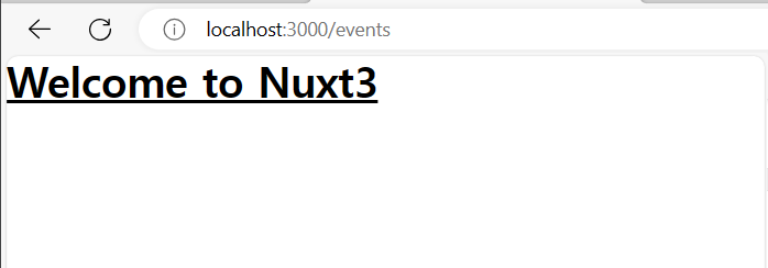 http://localhost:3000/events 를 호출해보자. app.vue 를 호출한 http://localhost:3000 의 내용과 동일할 것이다. 의도한 바와 다르다. 아래 내용을 계속 살펴보자.