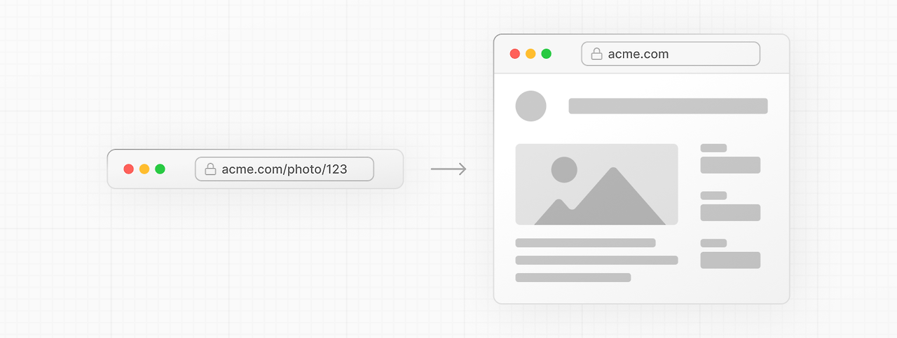 그러나 공유 가능한 URL을 클릭하거나 페이지를 새로 고침하여 사진에 접근할 때에는 모달 대신 전체 사진 페이지가 렌더링되어야 한다. 이때는 라우트 가로채기가 발생하지 않아야 한다.