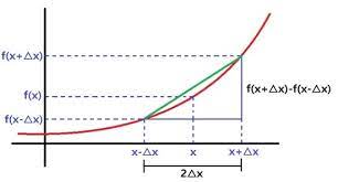 $$ f'(x) = \displaystyle \lim_{ h \to 0}\frac{f(x+h)-f(x-h)}{2h} $$