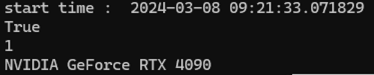 아래 명령어로 확인해봐도 torch는 외장그래픽카드로 잘 잡고있다.