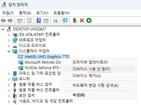 내장그래픽카드따윈 필요없으니 사용 안하기로 설정하자