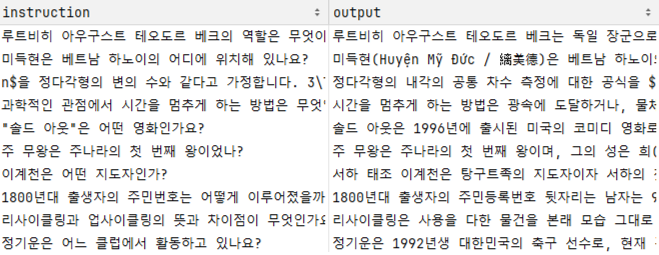 입력 및 출력의 형식이 일관되지 않고, 부정확한 instruction, output으로 작성되어 있었다.