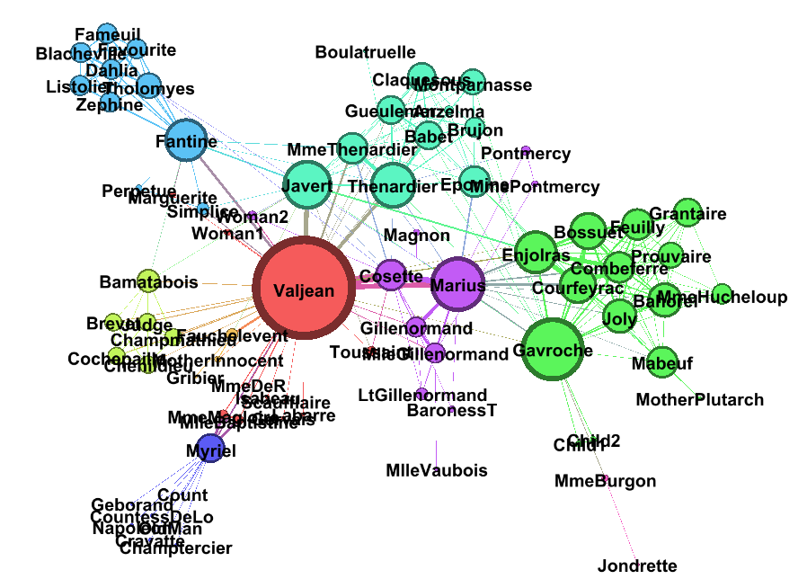 여기서 Node는 등장인물이며, Edge는 해당 등장인물들이 함께 등장한 것을 표현한다.