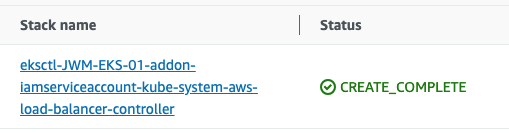 2023-10-19 16:40:57 [ℹ] waiting for CloudFormation stack "eksctl-JWM-EKS-01-addon-iamserviceaccount-kube-system-aws-load-balancer-controller"