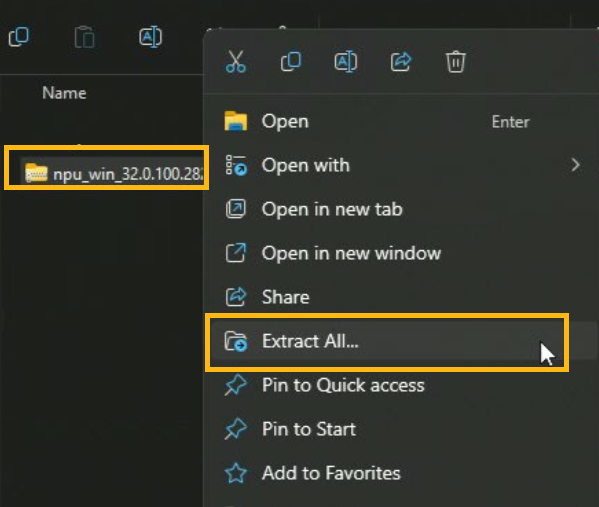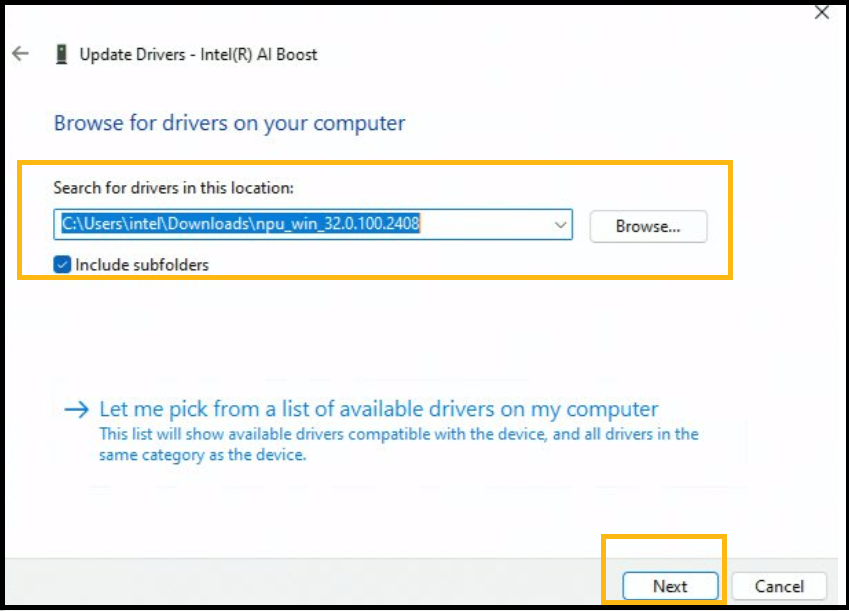 - 인텔 다운로드 센터 에서 최신 NPU 드라이버를 다운로드하십시오.