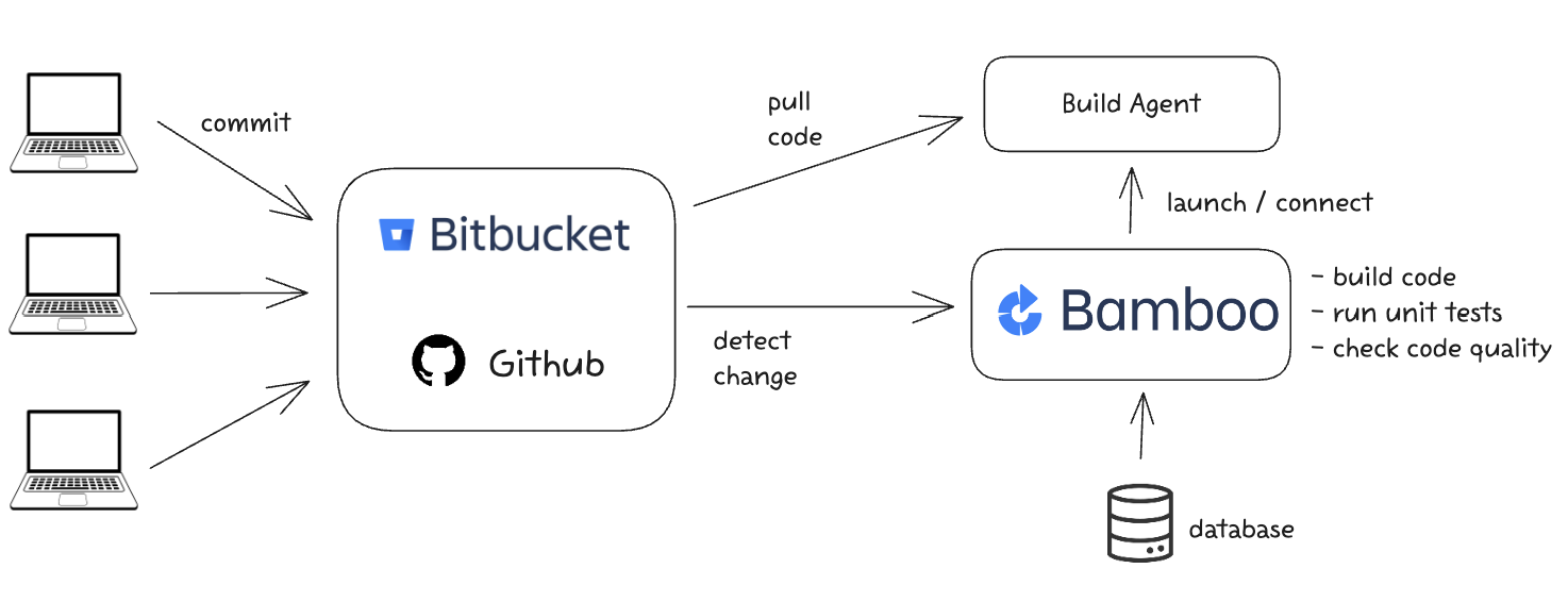 - Bamboo server 코드를 컴파일하거나 빌드하지 않는다. 이것은 Atlassian Bamboo Agents 가 한다.