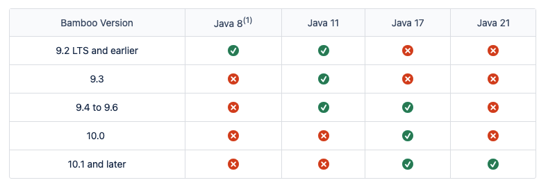 단, 설치하려고 하는 Bamboo의 버전이 어떤 버전을 지원하는지 확인이 필요하다. → https://confluence.atlassian.com/bamkb/how-to-upgrade-the-java-version-used-by-bamboo-1252329397.html