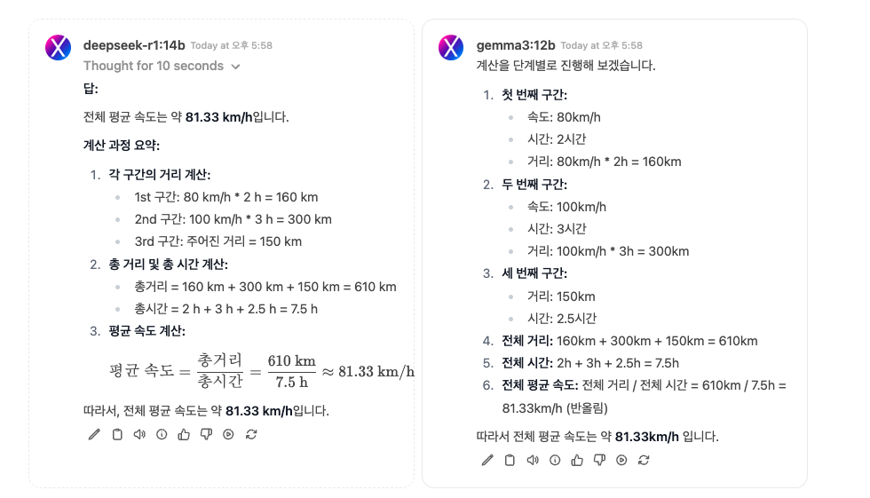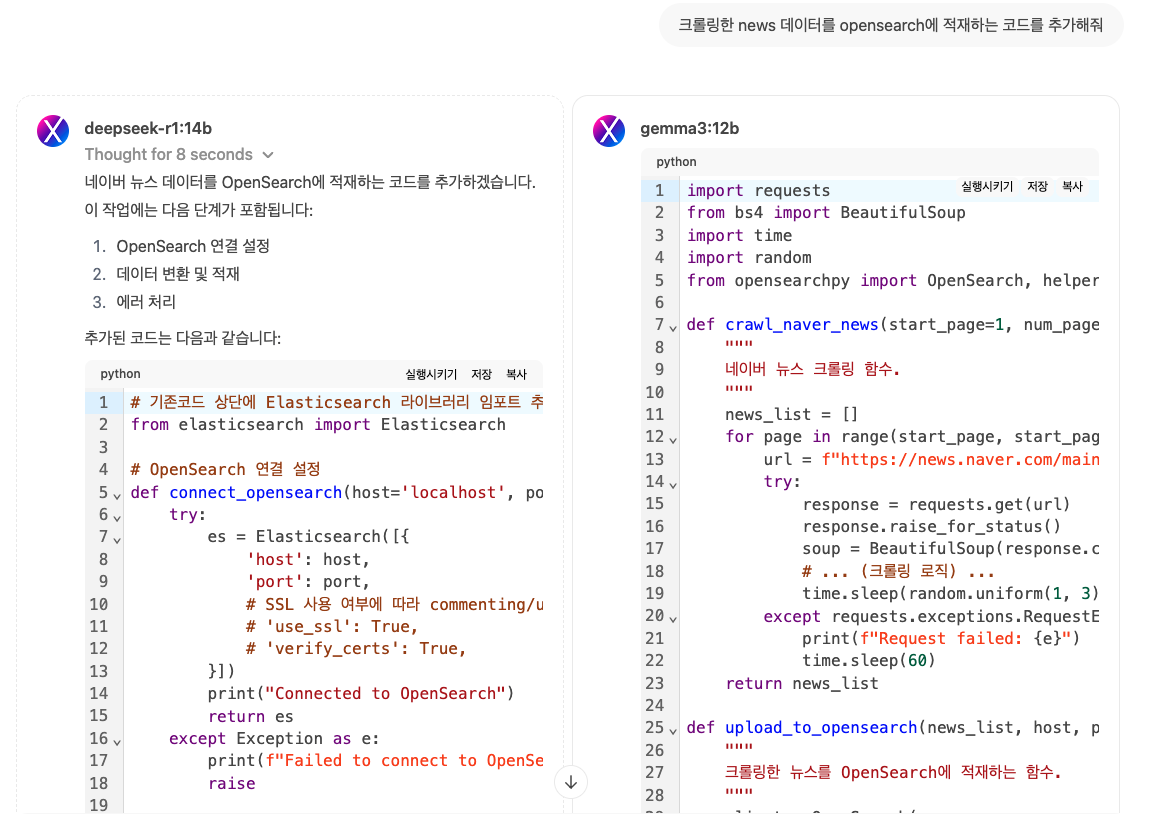 deepseek는 자주 중국어로 답변하여 retry를 해야하는 경우가 가끔 존재하여 불편하였지만,