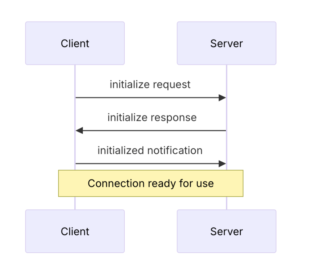 호스트 애플리케이션(claude Desktop)이 MCP 클라이언트를 생성하고, 생성된 클라이언트는 MCP 서버와의 연결을 설정하는데 이 때 프로토콜 버전, 기능, 권한 등을 협상*합니다.