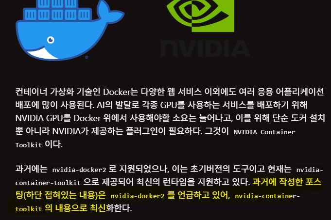 공식 문서에서는 이제 NVIDIA Container Toolkit이라는 이름으로 제공되는 것 같다.
