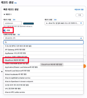 3-3) Route53에서 Origin Domain 라우팅 등록