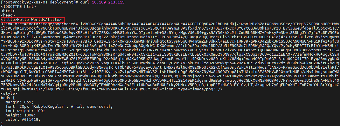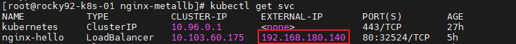 내부 아이피가 지정되어 있음을 볼 수 있다. 클러스터 내부 노드에서 해당 아이피로 확인할 수 있다.