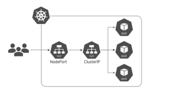 위에서 보면 노트포트 타입의 서비스도 클러스터IP 타입의 서비스와 동일하게 아이피, 포트가 할당된다. 노드포트는 내부의 클러스터IP 주소(VIP)를 통해 실제 파드로 연결된다.