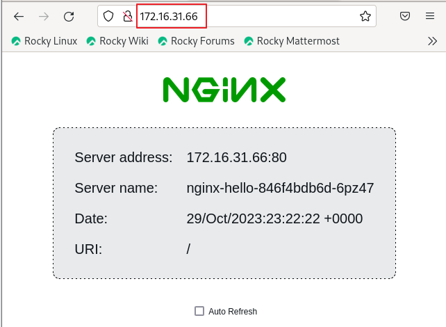 크러스터 노드(VM) 에 브라우저가 설치되어 있다면 브라우저로도 볼 수 있다. 나는 주로 CentOS 계열인 RocyLinux 의 DVD 버전을 옵션 변경없이 설치해서 기본으로 데스크탑이 설치되어 있다.