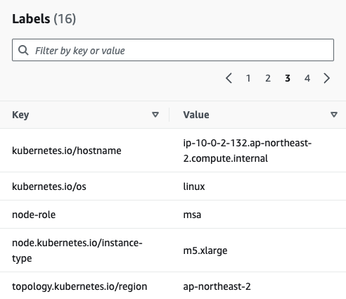 kubectl label nodes ip-10-0-2-132.ap-northeast-2.compute.internal node-role=msa