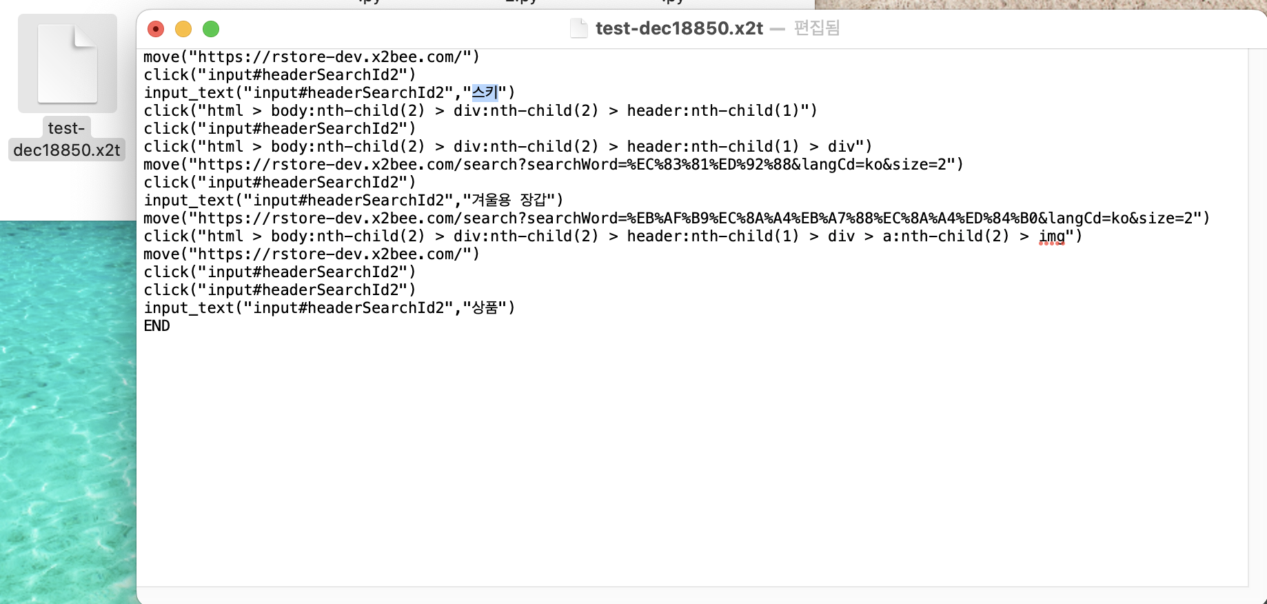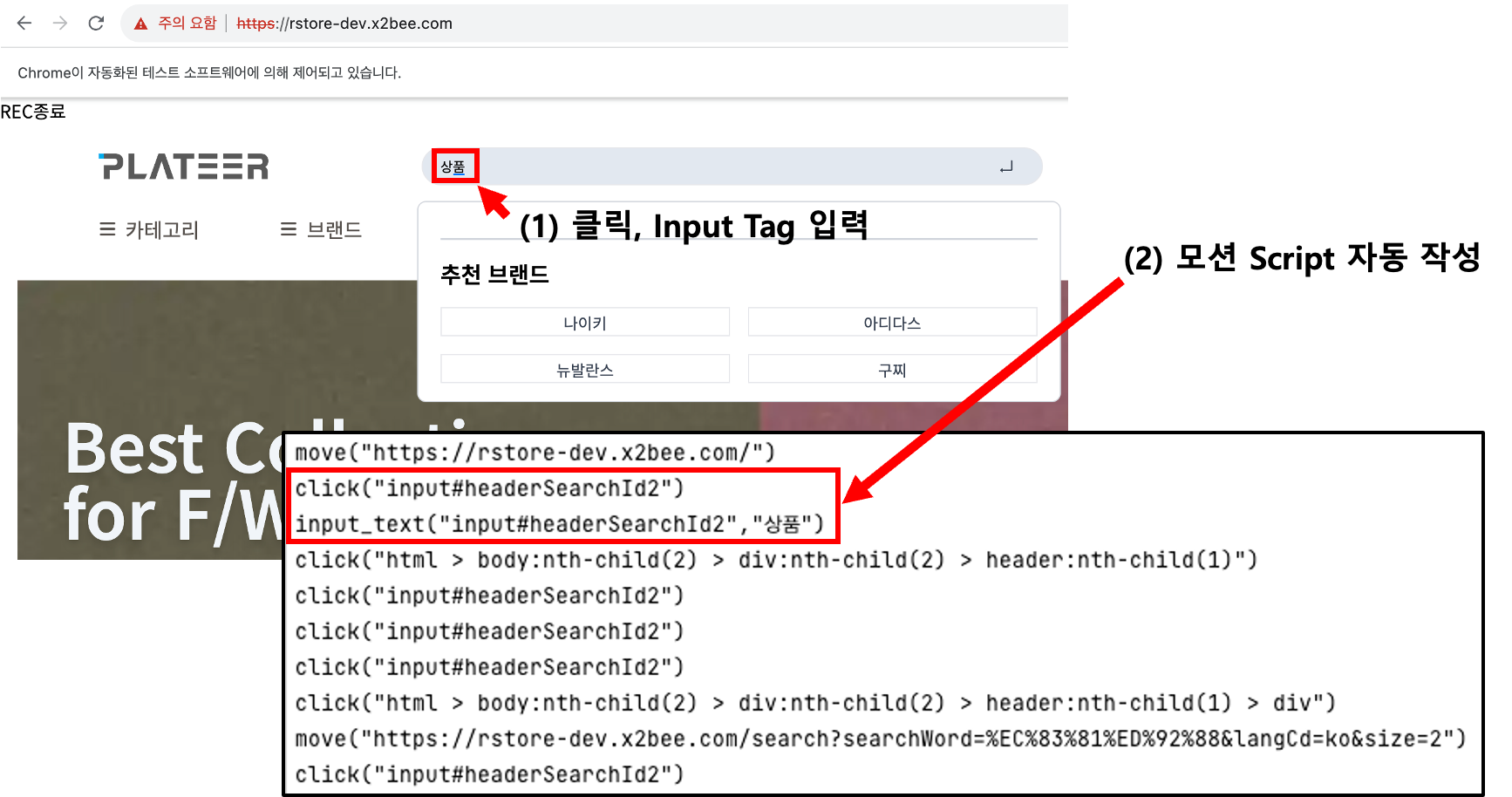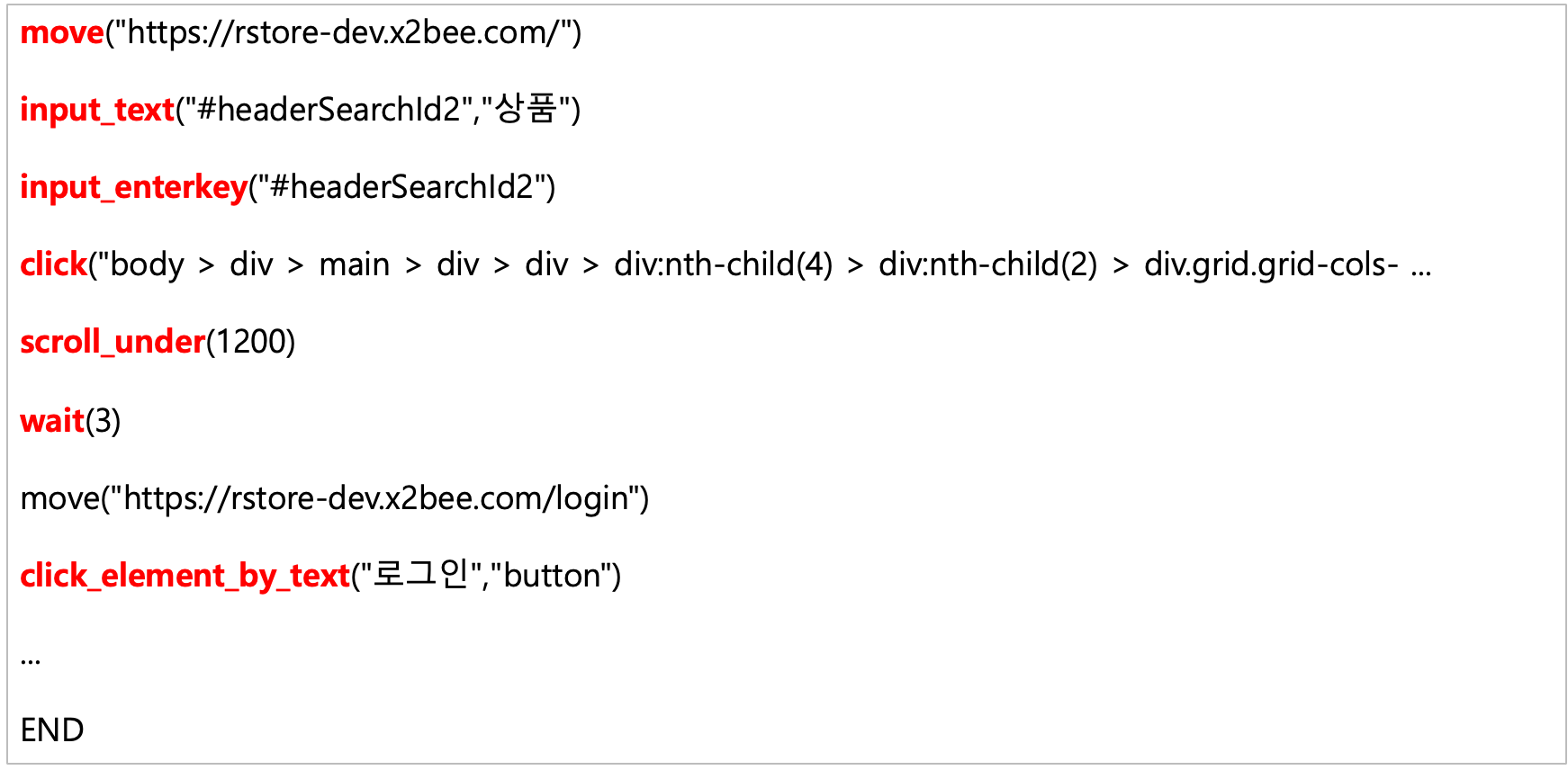 직접 클릭, 입력, 페이지 이동등을 수행하면 이에 따른 스크립트를 자동으로 기록하고