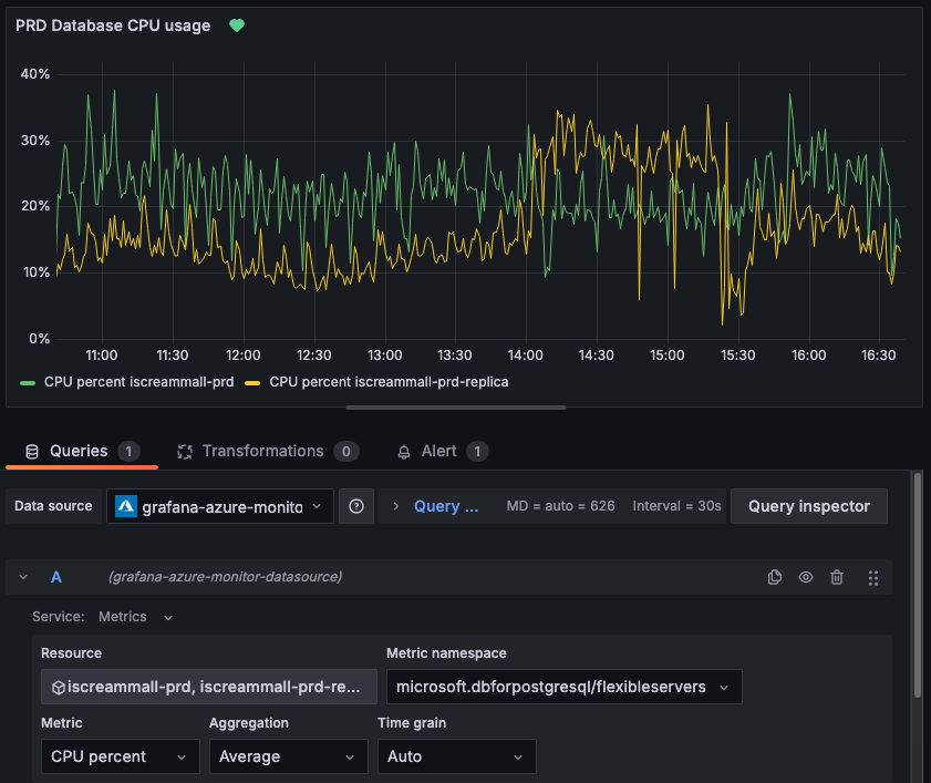 아래와 같이 panel을 새로 생성하면 Database의 CPU 사용률도 그래프 형태로 볼 수 있다.