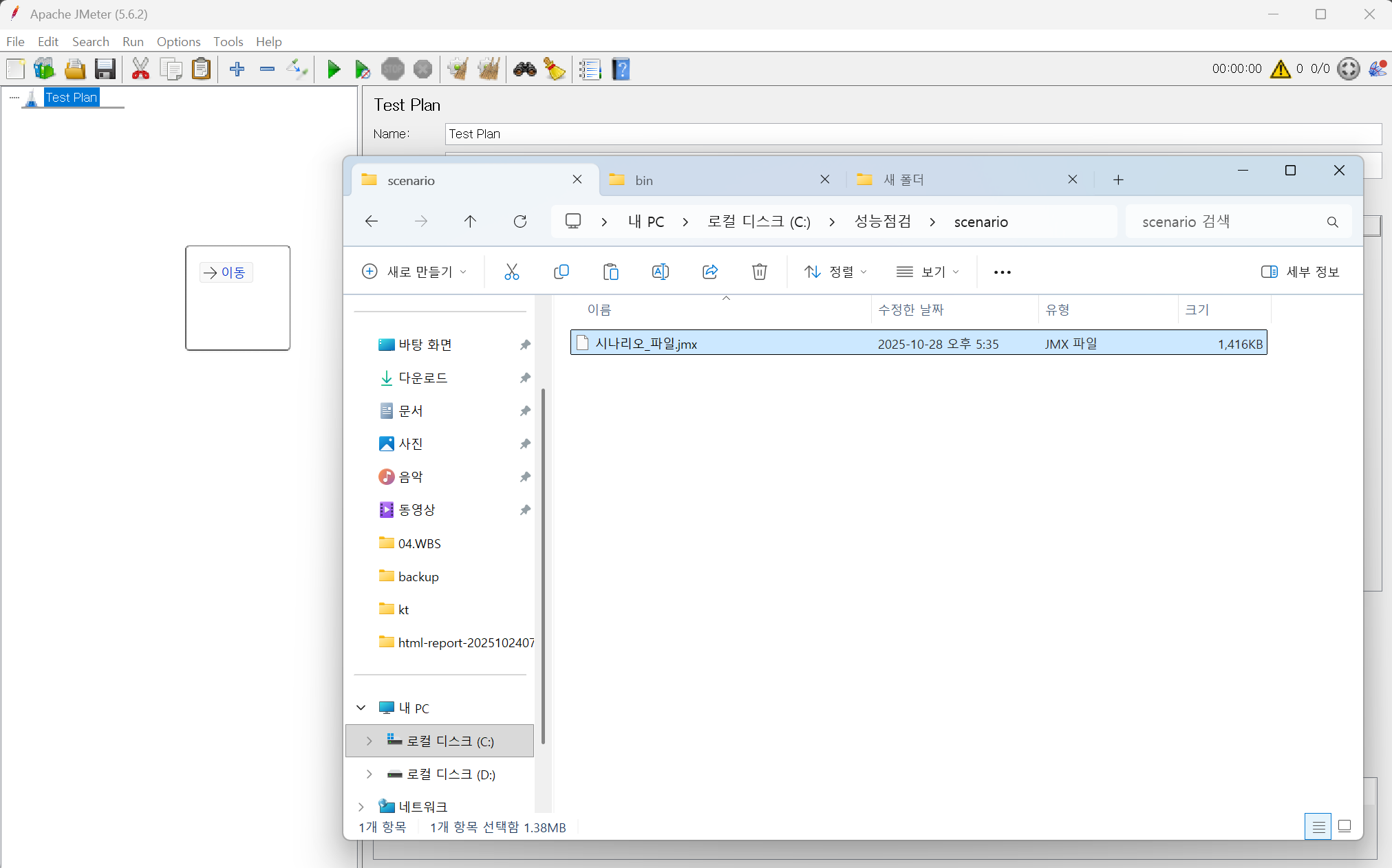 C드라이브(C:\)에 있는 '성능점검' 폴더로 들어간 뒤 'jmeter-custom' 파일을 실행합니다.
